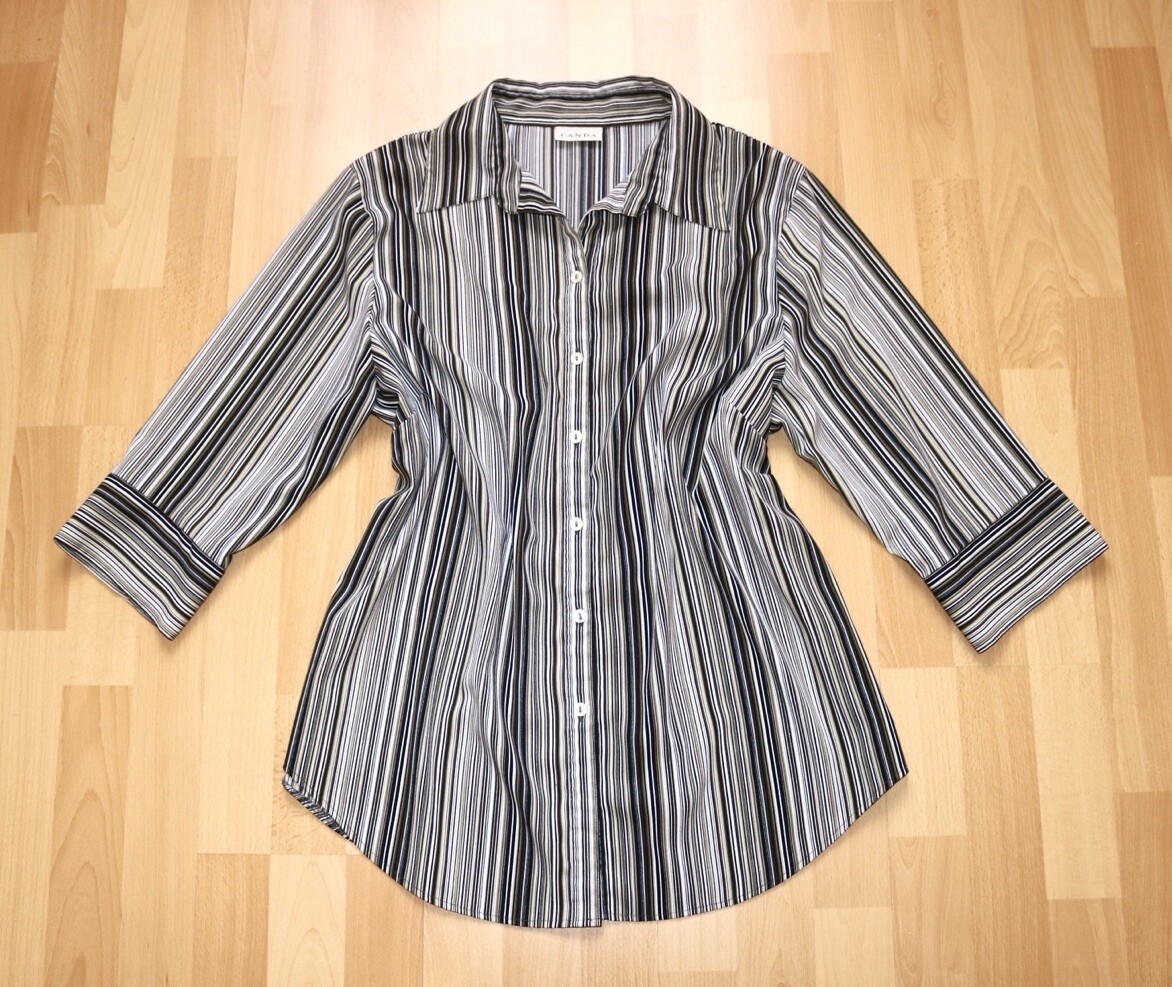 Bluse 44 46 Gestreifte Hemdbluse Stretch 3/4 Ärmellänge Grün Neuwertig