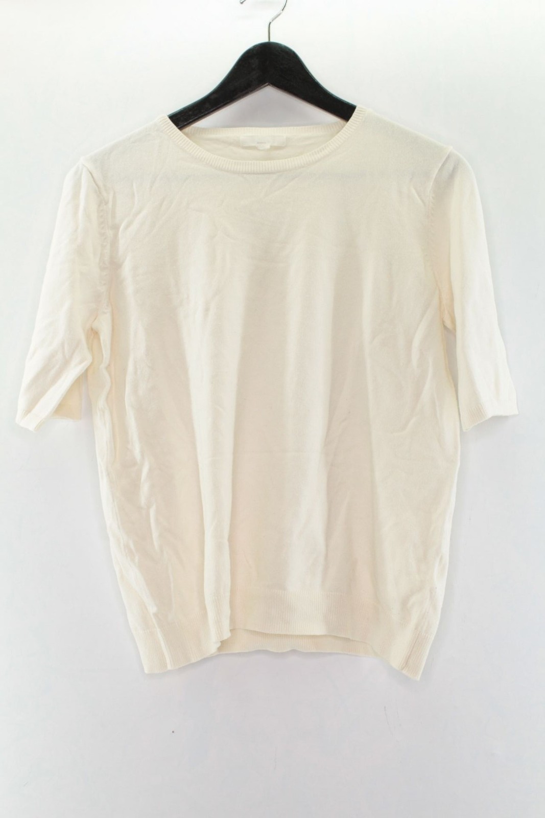 H&M Damen Pullover Gr. S Oberteil Creme Kurzarm Sweatshirt #FG-32