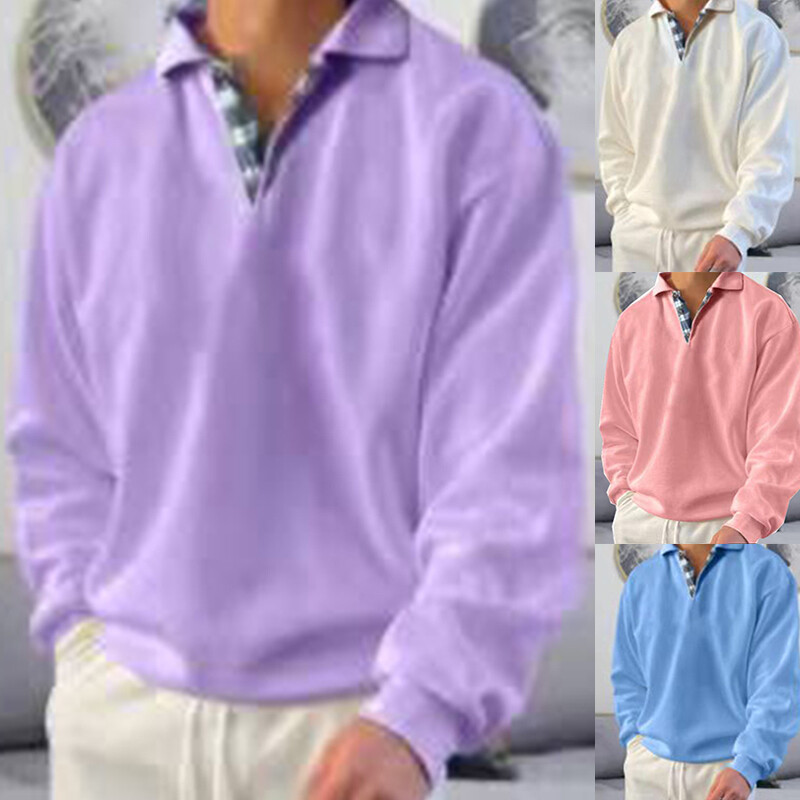 Lässiges Kapuzenloses Kariertes Herren-Sweatshirt Mit Langen Ärmeln B