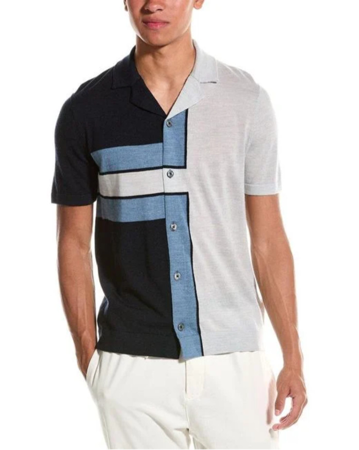 Ted Baker Hemd Herren Strick TB 3 UK M Oakals Blau Colourblock 100% Wolle NEU